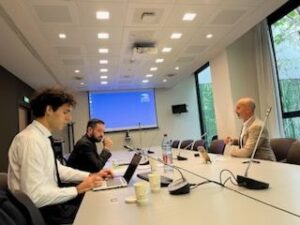 Gilles Leproust, président, échangeait avec Chantal Mainguené, directrice générale de Bleu Blanc Zèbre, et Laurent Galazzo, responsable Territoires & Solutions, co-animateur de la communauté et référent Route en Communes chez Bleu Blanc Zèbre.